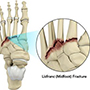 The midfoot connects the hindfoot to the forefoot, and consists of one navicular bone, one cuboid bone, and three cuneiform bones. The navicular bone is found in front of the heel bone, and the cuneiform and cuboid bones are arranged in front of the navicular bone.