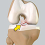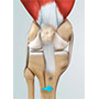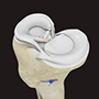 Movement of the bones causes friction between the articulating surfaces. To reduce this friction, all articulating surfaces involved in movement are covered with a white, shiny, slippery layer called articular cartilage. The articulating surface of the femoral condyles, tibial plateaus and the back of the patella are covered with this cartilage. The cartilage provides a smooth surface that facilitates easy movement.