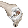 Within the knee joint between the femur and tibia there are two C shaped cartilaginous structures called menisci. Menisci function to provide stability to the knee by spreading the weight of the upper body across the whole surface of the tibial plateau. The menisci help in load bearing by preventing the weight from concentrating onto a small area, which could damage the articular cartilage. The menisci also act as a cushion between the femur and tibia by absorbing the shock produced by activities such as walking, running and jumping.